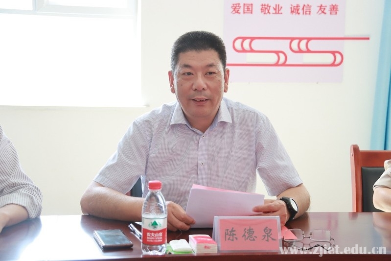 在塔里木职业技术学院,陈德泉对塔职院近年来取得的成绩表示高度赞赏,向塔职院对学校援疆干部无微不至的照顾表示感谢。他指出,学校积极落实浙江省“双高校”项目高水平专业群建设单位组团对口帮扶塔里木职业技术学院专项工作,以电子商务专业群为依托,以援疆干部为纽带,依照以校包专业的模式开展精准帮扶,取得了一定的实效。希望今后两所学校以一师阿拉尔市产业结构和人才需求为出发点,进一步深化合作模式,扩大合作范围,结合两所学校实际及专业群发展需求,在专业优化建设、师资队伍培养、课程质量提升、科研项目培育、教学信息化建设等方面建立良性互帮互助工作机制,确保对口帮扶有方法、有特色、有实效。